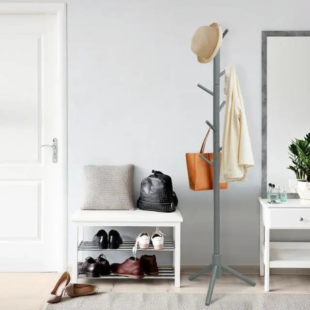 Multipurpose 8 Hooks: With 8 sturdy, staggered hooks, this freestanding coat tree provides ample space for hanging various items, such as clothes, handbags, hats, scarves, ties, umbrellas, and more. Each hook can support up to 7 lbs without breaking.