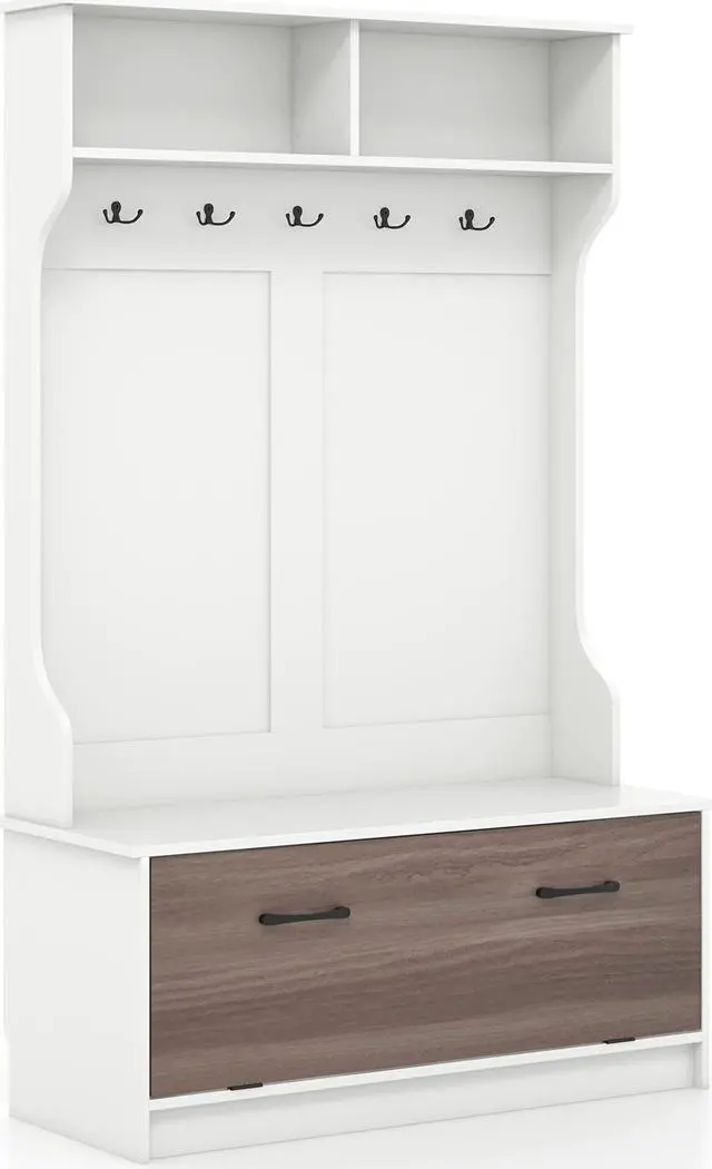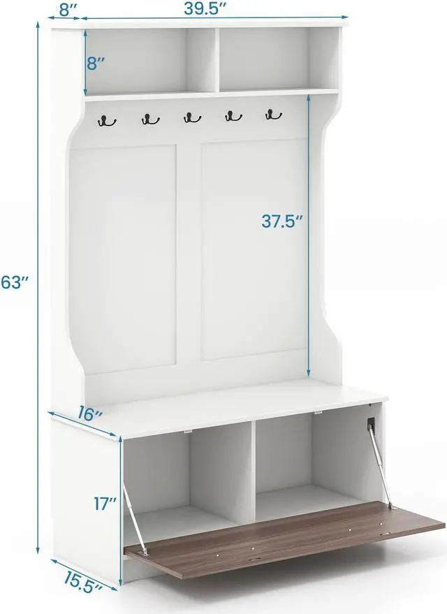 Space-saving Design and Easy Cleaning: Measuring 39.5" x 8" x 63"(L x W x H), this space-saving hall tree occupies less floor space and helps you make full use of limited space. What's more, the smooth surface can be effortlessly wiped clean with a soft cloth.