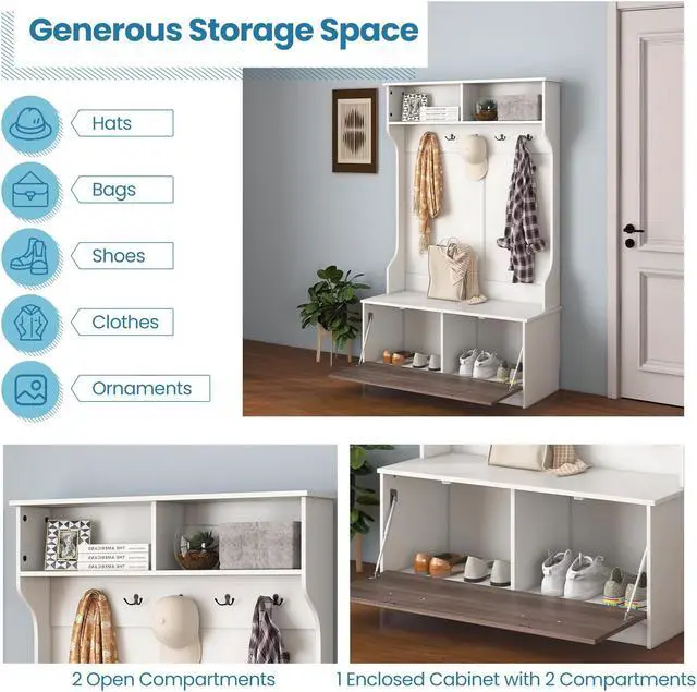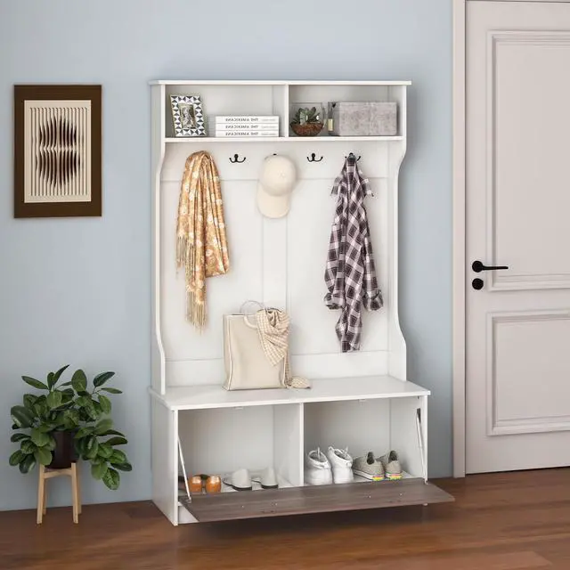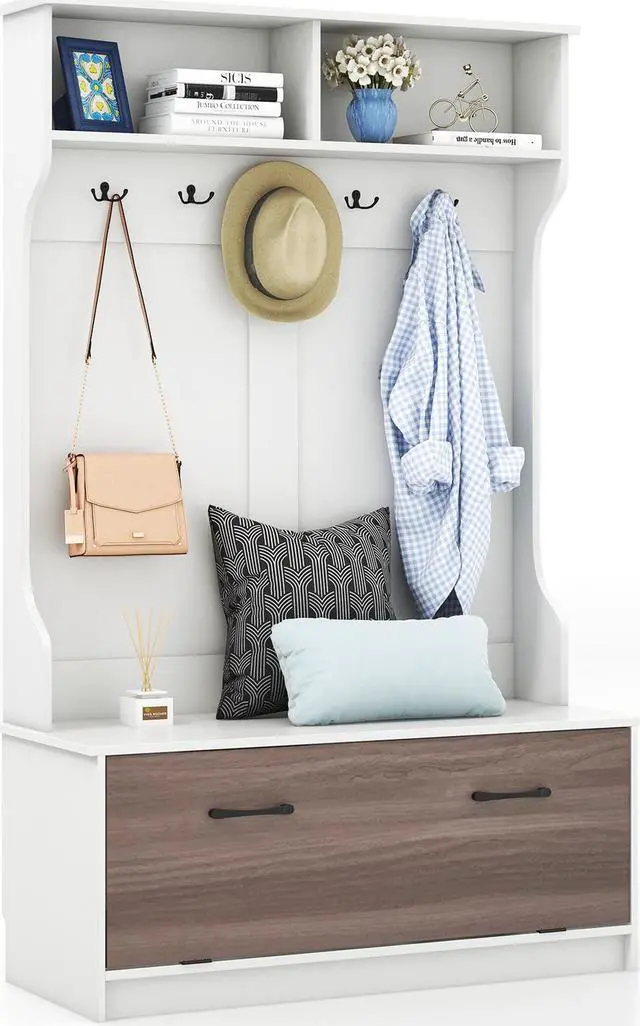Safe and Reliable Structure: Thanks to its solid frame and anti-toppling device, this hall tree will stay stable and steady on the ground. And it's not easy to wobble or collapse. Furthermore, the anti-slip foot pads add more sturdiness and protect the floor from being scratched.