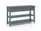 -Long tabletop and 2 open shelves for decorations and storage baskets