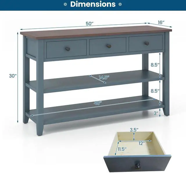 Versatile Storage Options: Offering ample storage with 3 roomy drawers and 2 open shelves, this console table is perfect for keeping your entryway organized. The drawers are pre-installed, saving you time and effort on assembly.