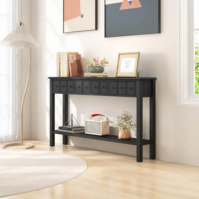 Firm and Well-crafted Piece: When set against the wall, the console table can be fixed with anti-toppling device in case of wobbling or tipping over. Plus, solid wood legs provide enhanced support to ensure good stability and strong load-bearing capacity.