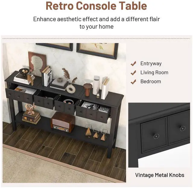 Transform Use Space: In addition to being used as a console table, it can be served as a sofa side table, or mini bar area table, etc. More, the console table combines retro aesthetic and practical use is an aesthetically-pleasing piece for living room, entryway, or bedroom.
