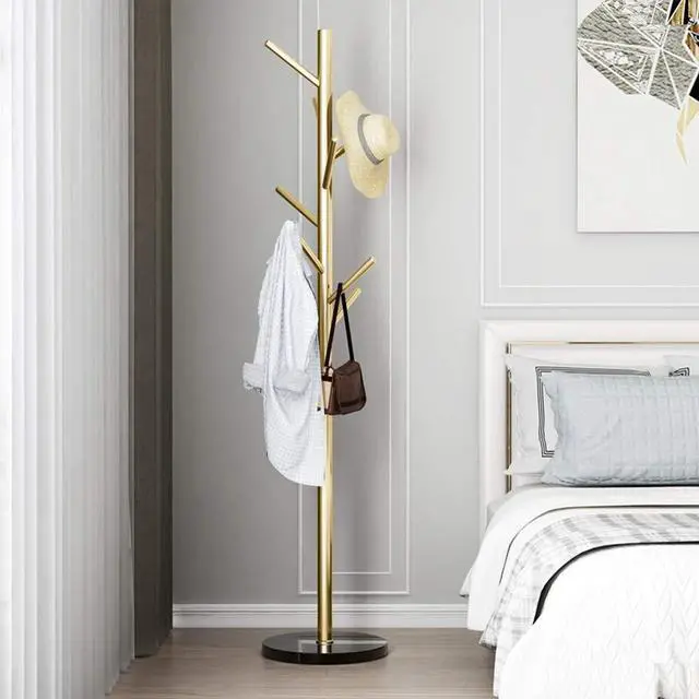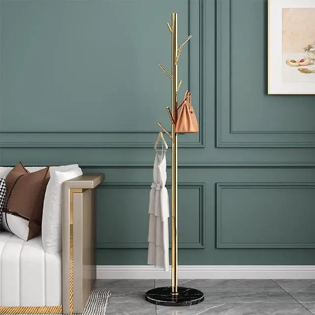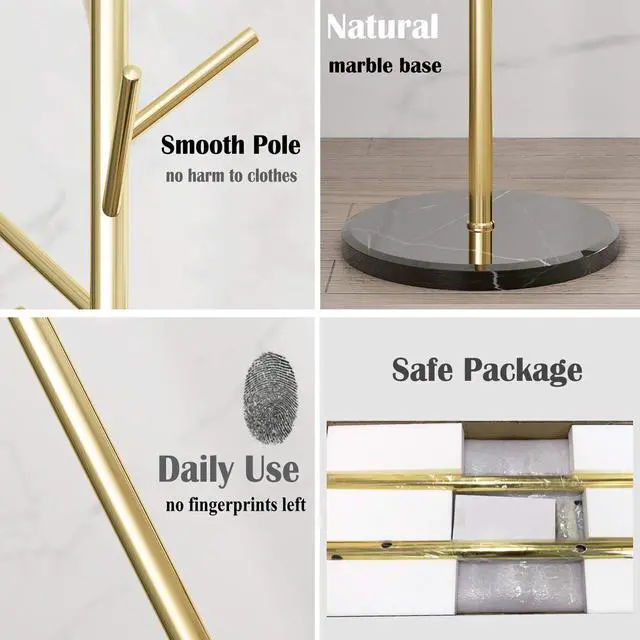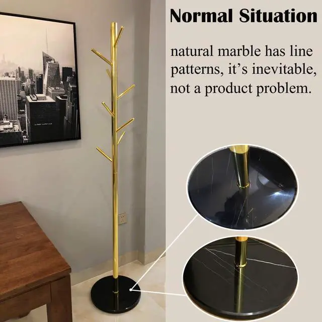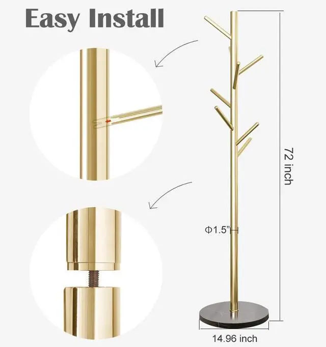 Size: Coat rack: 72"(H), marble base: 14.96"(D). Includes 8pcs * 5.5" metal coat hooks.
