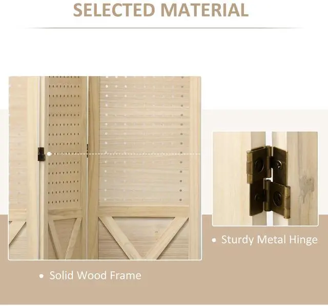 Quality Material: Constructed of a solid wood frame, an array of holes, metal hinges, and anti-slip feet, this room separator is sturdy while still allowing air circulation.
