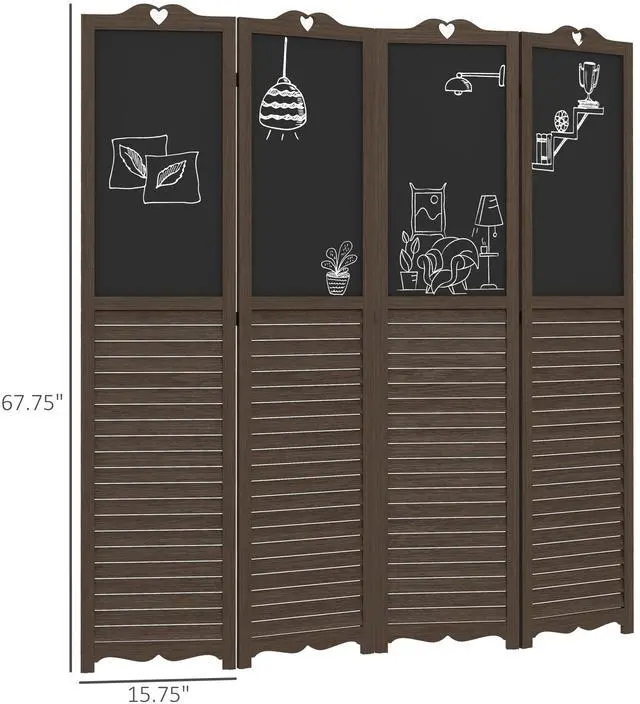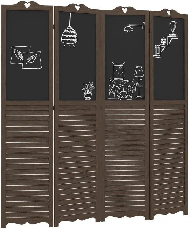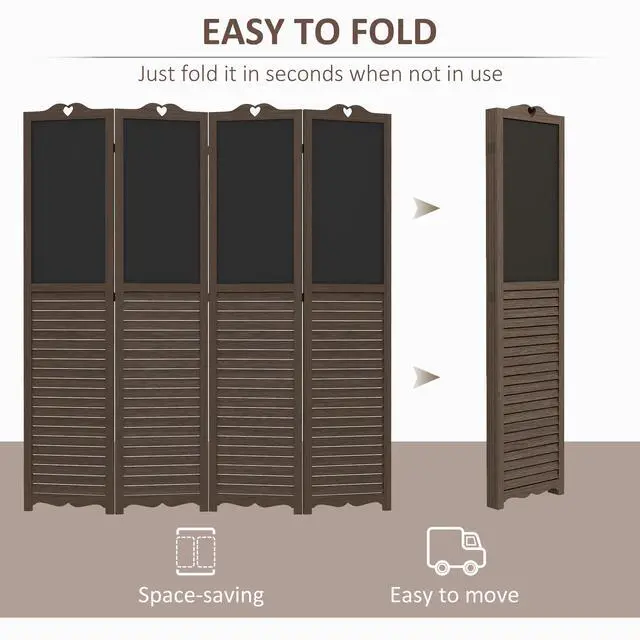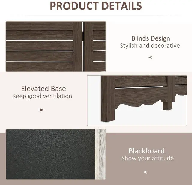 Stylish Privacy Partition: This 4-panel room divider adds instant privacy wherever you need it and is excellent for dividing large rooms or creating a smaller enclosed private space within a single room. Unique Design: The all-wood design with blind patterns and blackboard to write notes or draw designs on, the panel screen brings a rustic feeling to your living room, bedroom, or home office. Selected Material: The wall divider has solid wood and nine connecting metal hinges