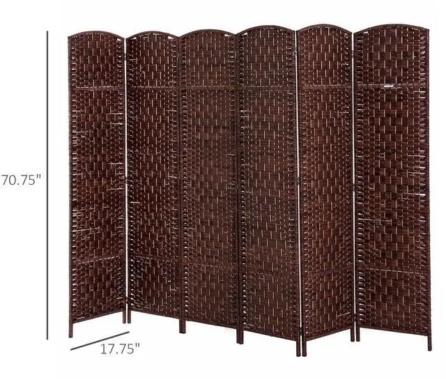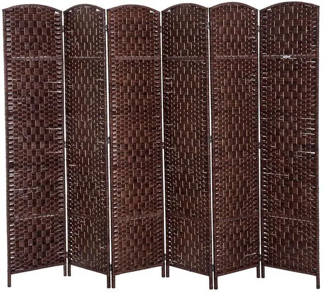 • 6' Tall Wicker Weave 6 Panel Room Divider Privacy Screen - Brown