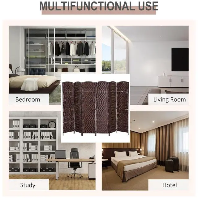6 Elegant Panels: Designed with six elegant wicker woven panels, each standing 6'tall, this panel room divider is both practical and fashionable creating a stylish room statement that will complement most room decor.