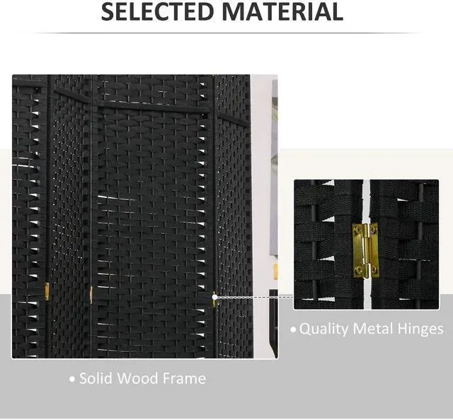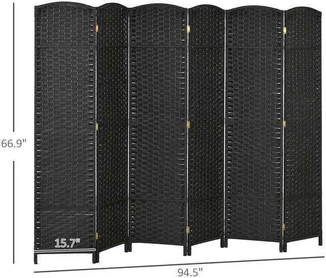 • Room Divider, 6 Panel Folding Privacy Screen, 5.6' Tall Freestanding Wall Partition for Home Office, Bedroom, Black