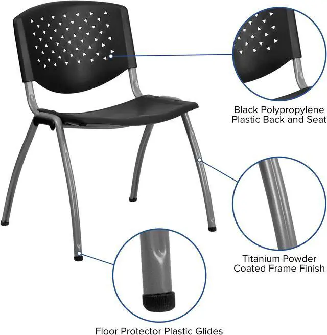 This heavy duty plastic stack chair is sturdy in construction to withstand regular use and frequent stacking. To make transporting even easier, equip yourself with the appropriate sized stack chair dolly.