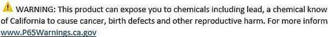 WARNING: This product can expose you to chemicals including Lead, which is known to the State of California to cause both cancer and birth defects or other reproductive harm. For more information, go to www.P65Warnings.ca.gov.