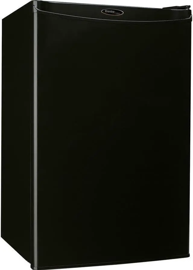 The Danby 4.4-Cubic Foot Mini Refrigerator offers maximum storage in a compact design thanks to a flat-back design and integrated door handle. A reversible door hinge lets you decide which way you want the door to open for added versatility. Ideal for apartments, dorms, offices, and wet bars, this sleek, black 4.4-cubic foot mini refrigerator offers ample room to store groceries, beverages, and more without taking up unnecessary space.