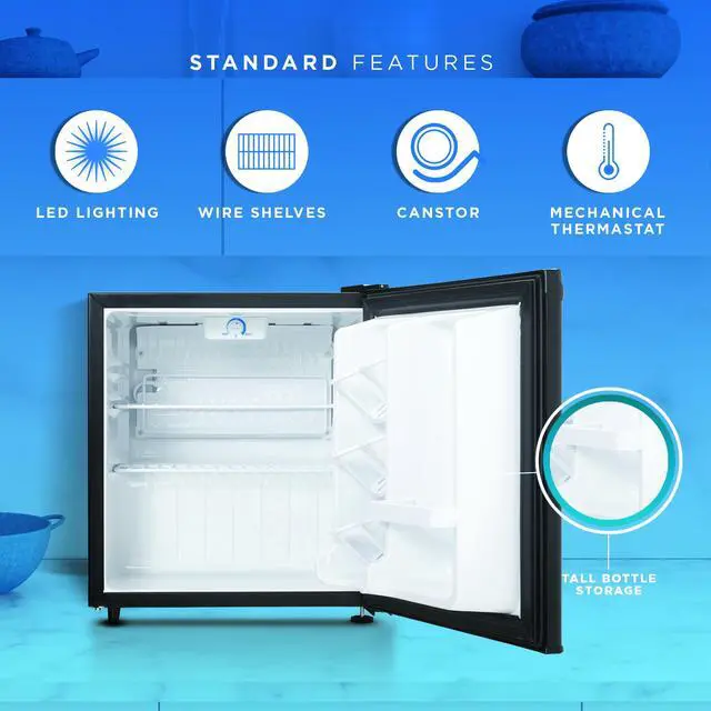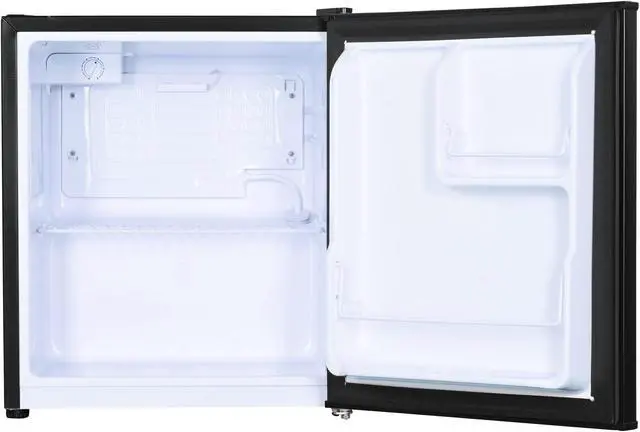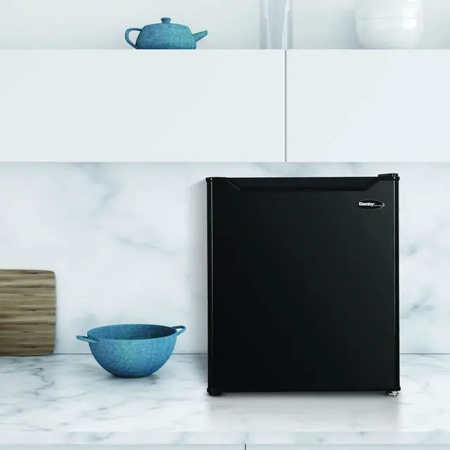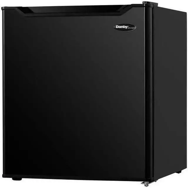 This compact refrigerator is the ideal solution for smaller spaces, such as basement bars, cottages and dorms rooms. This small, but mighty, compact fridge by Danby offers 1.6 cu. ft. (46 L) of cooling area with automatic defrost. Theres a reversible door hinge, which enables users to open the fridge left or right-handed via the integrated door handle for any room set-up. This unit features 1 full width wire shelf and tall bottle storage, allowing you to best maximize your fridge space. - 1.6 cu. ft. (46 L) capacity compact refrigerator - ENERGY STAR compliant - Environmentally friendly R600a refrigerant - Automatic Defrost - 1 full width wire shelf - Temperature range of 32F - 50F - Mechanical thermostat - Integrated door handle - Reversible door hinge - Smooth back design - Integrated door shelving with tall bottle storage