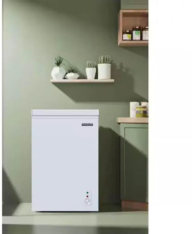 The Frigidaire Chest Freezer gives you the extra freezer space you're looking for your frozen food needs. It's the ideal size for extra freezer storage if you do not have too much space. The single flip-up lid provides easy access. A convenient, removable storage basket enables you to utilize the space efficiently and keeps frequently used items near the top. The front, external temperature controller lets you easily monitor and adjust the internal temperature as needed. And its water drain ensures a clear path for water to travel during manual defrosting.