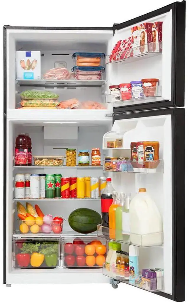 This refrigerator offers 18 cu. ft. of storage space for fresh and frozen foods. Midea's garage ready refrigerator maintains stable cooling in temperatures ranging from 38F to 110F. The gallon-sized door bins easily hold large containers, freeing up space on the interior shelves.