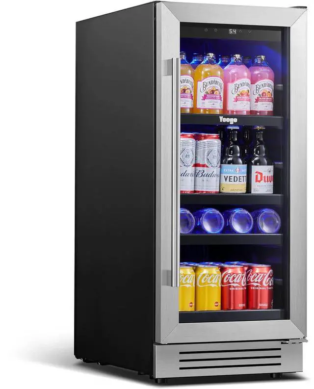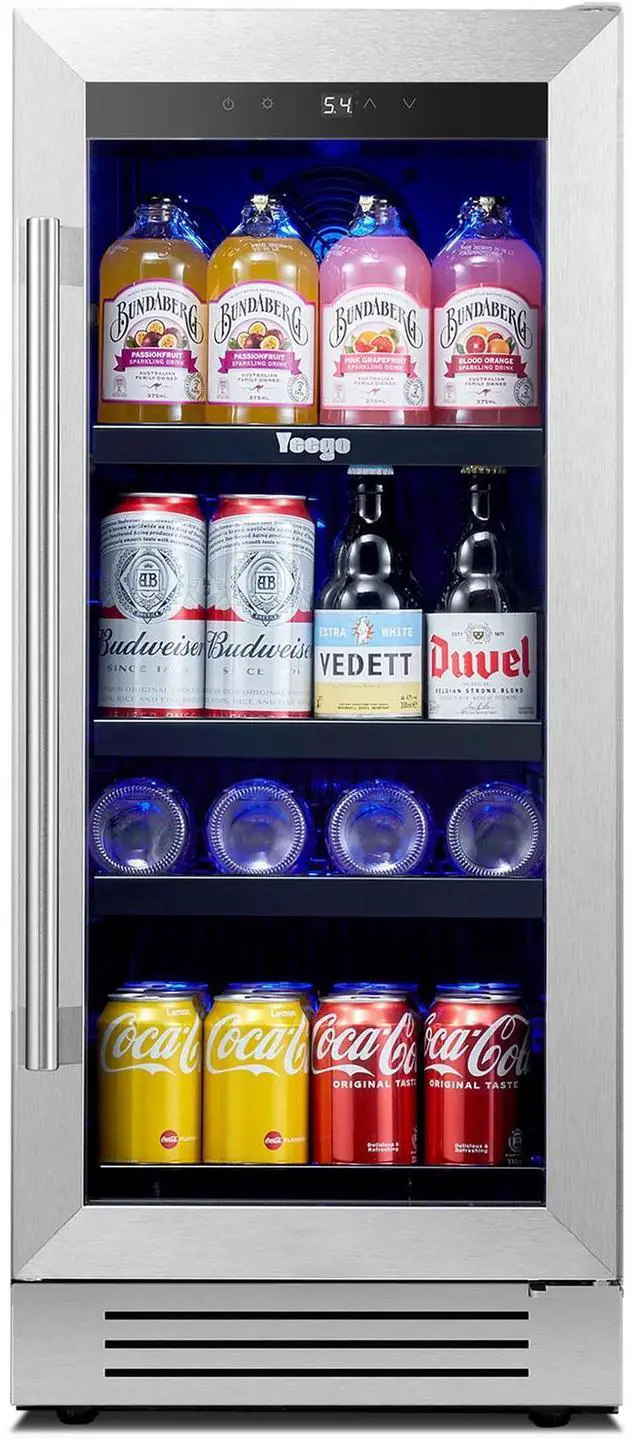 Yeego 85L Beverage and Wine Cooler | 80-Can Capacity | Sleek Stainless Steel Design | Efficient Cooling System | Ideal for Home or Bar