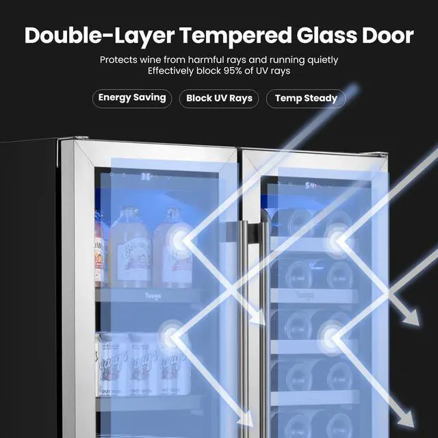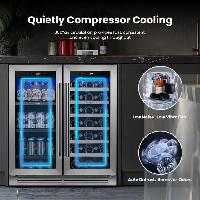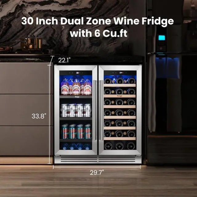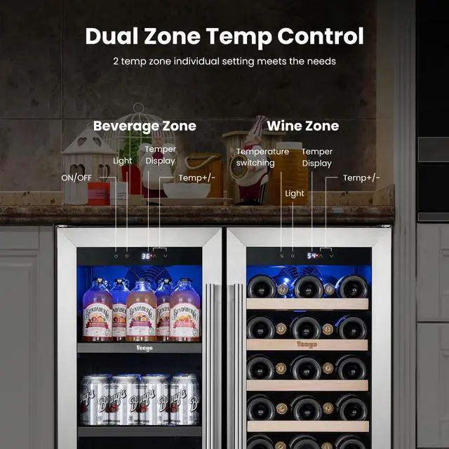 Dual Zone Storage: Independent temperature control for wine and beverage compartments, ensuring optimal conditions for both.