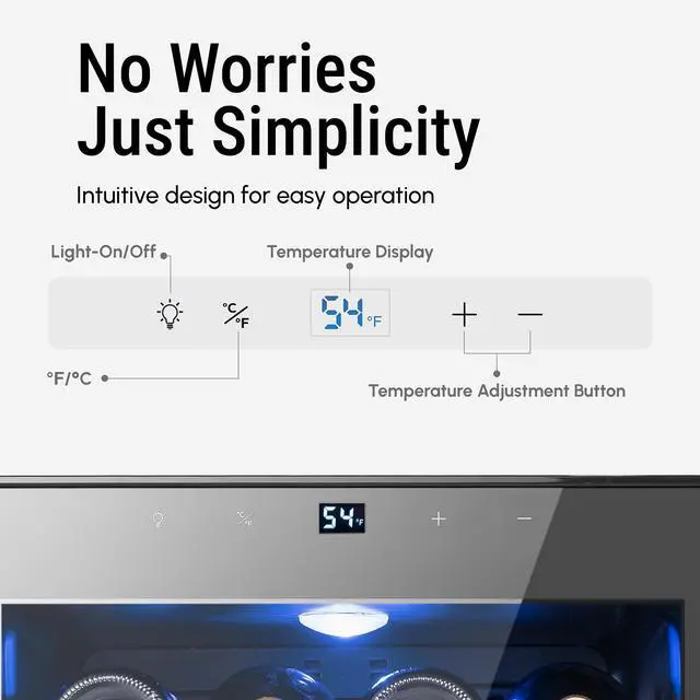 For added convenience, the cooler features a temperature lock function. The cooler automatically locks after 12 seconds of inactivity, and with a 5-second hold on the unlock button, you can prevent accidental temperature adjustments.