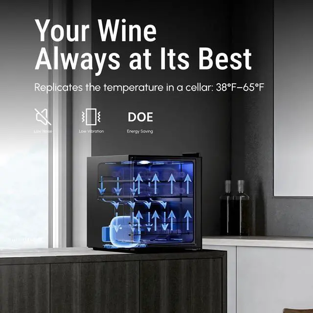 Equipped with an advanced compressor and direct cooling system, the Yeego cooler operates at an ultra-quiet 38dB, ensuring that your environment remains peaceful while your wine is stored at the ideal temperature.