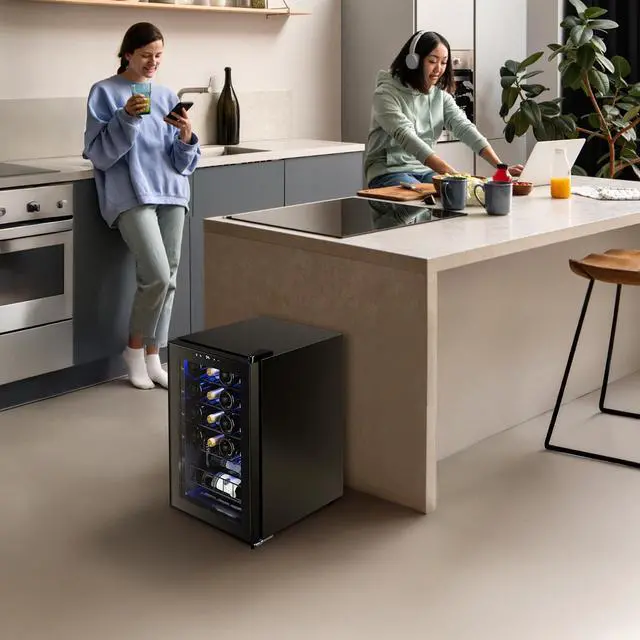 Designed to fit seamlessly into any space, the Yeego wine cooler measures 17 inches wide, 18.9 inches deep, and 25.4 inches high. The elegant glass door, paired with soft blue LED interior lighting, enhances the display of your wine collection while creating a modern, inviting atmosphere.