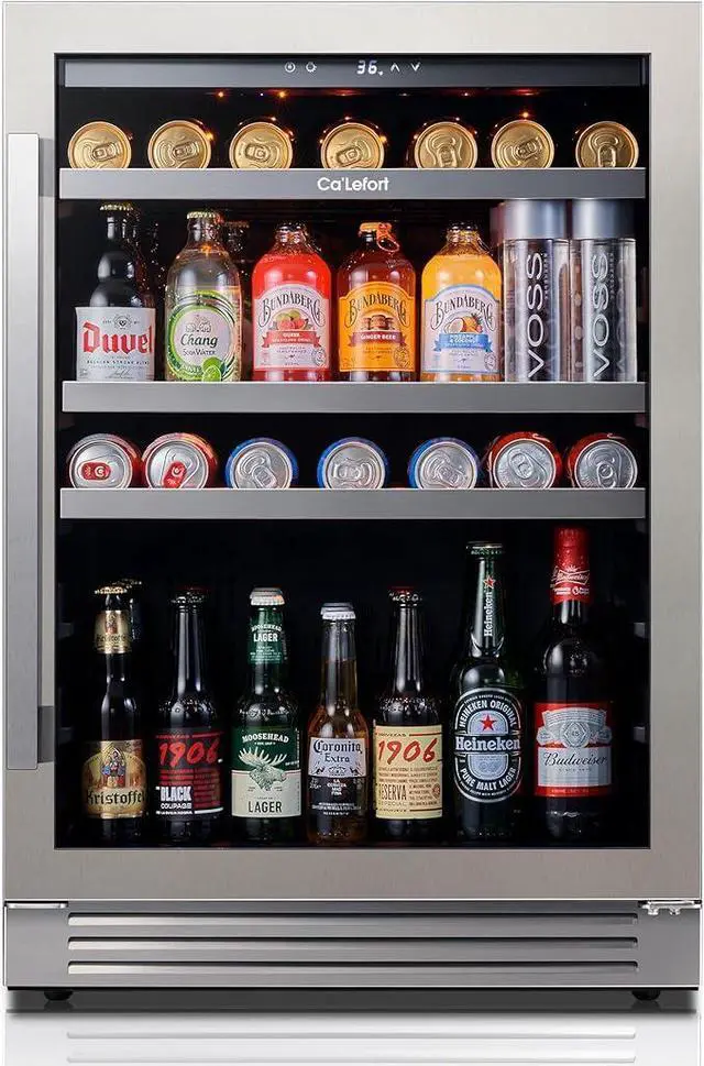 The CaLefort 85L Compressor Wine Cooler offers the ideal blend of efficiency and elegance, making it perfect for both family gatherings and solo enjoyment. With its generous capacity, this cooler can hold 28 standard 750ml wine bottles or 80 cans of 12oz drinks. It also features an advanced temperature control system to keep your beverages at the perfect temperature. The stylish stainless steel exterior and modern design add sophistication to your space, while its eco-friendly and energy-saving features allow you to enjoy your favorite drinks while caring for the environment. The CaLefort 85L combines top-tier functionality with a sleek, user-friendly design to elevate your drinking experience.