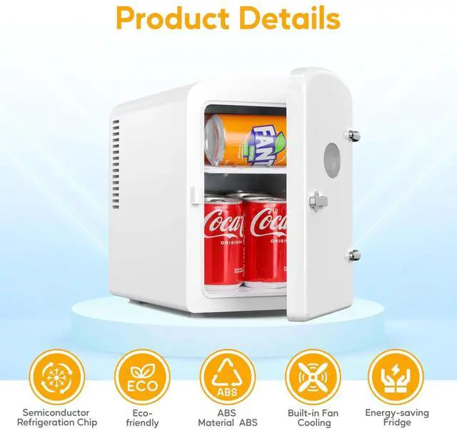 Multi-Function: Mini refrigerators can cool or heat. Cool up to 59- 64.4 °F (15-18°C below ambient temperature (minimum 32°F)) and keep warm up to 122-149°F (50-65°C). It can keep food fresh or keep hot drinks warm, and you can switch them at the push of a button.