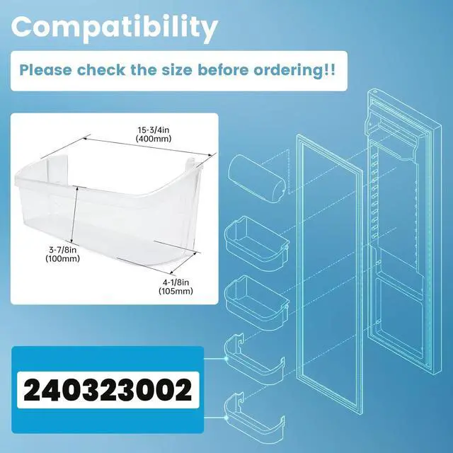 Replacement: This clear refrigerator door bin shelf is designed to replace part numbers such as 240323002, PS429725, AP2115742, and AH429725, offering a perfect fit for Frigidaire refrigerators.