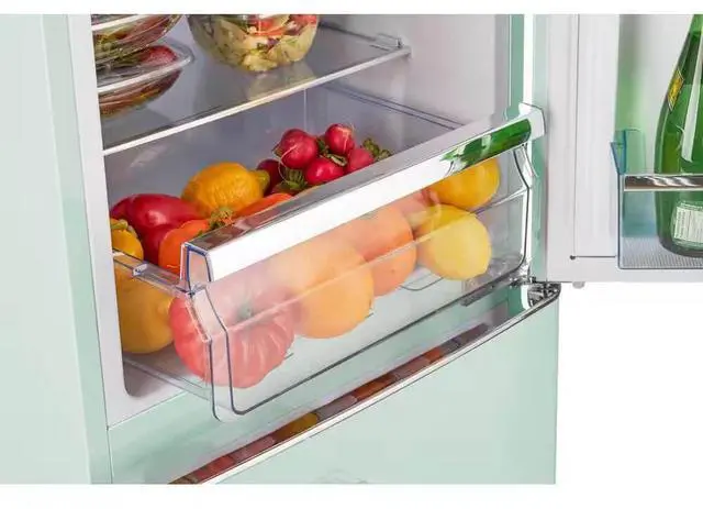 Storing fresh and frozen food is quick and convenient thanks to the fridge-on-top, freezer-at-the-bottom design. Convenient storage options and simple, effortless controls all packed into a stylish retro design make this the perfect stand-out unit for your home, cabin, garage, and more.