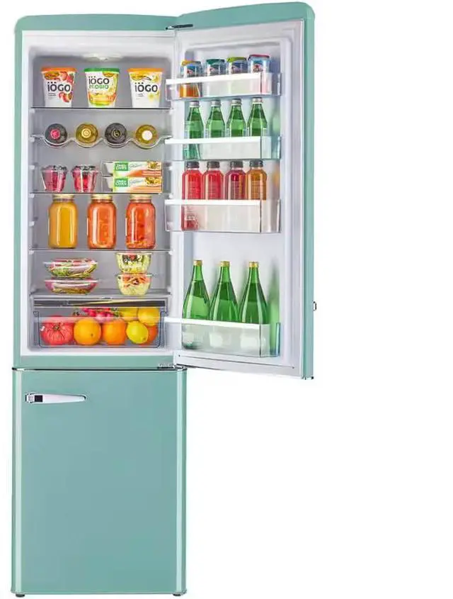 Storing fresh and frozen food is quick and convenient thanks to the fridge-on-top, freezer-at-the-bottom design. Convenient storage options and simple, effortless controls all packed into a stylish retro design make this the perfect stand-out unit for your home, cabin, garage, and more.