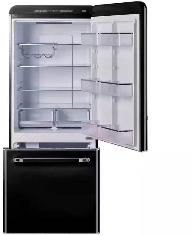 The 18 cu. ft. Classic Retro bottom mount refrigerator is the perfect family-sized refrigerator with ample space to keep all your fresh and frozen foods, packaged in an eye-catching throwback design. This refrigerator is ENERGY STAR Certified for energy efficiency all year-round, designed for optimal energy savings and easy, dependable use. An intuitive control panel enables precise temperature control while providing intelligent features like Quick Cool and Quick Freezer. Its frost-free design allows for easy cleaning without dealing with frost buildup and It also comes with a built-in ice maker and a spacious freezer compartment for all your familys needs.