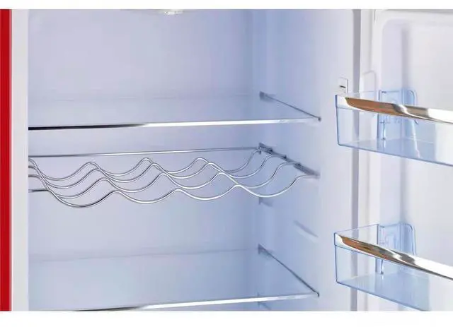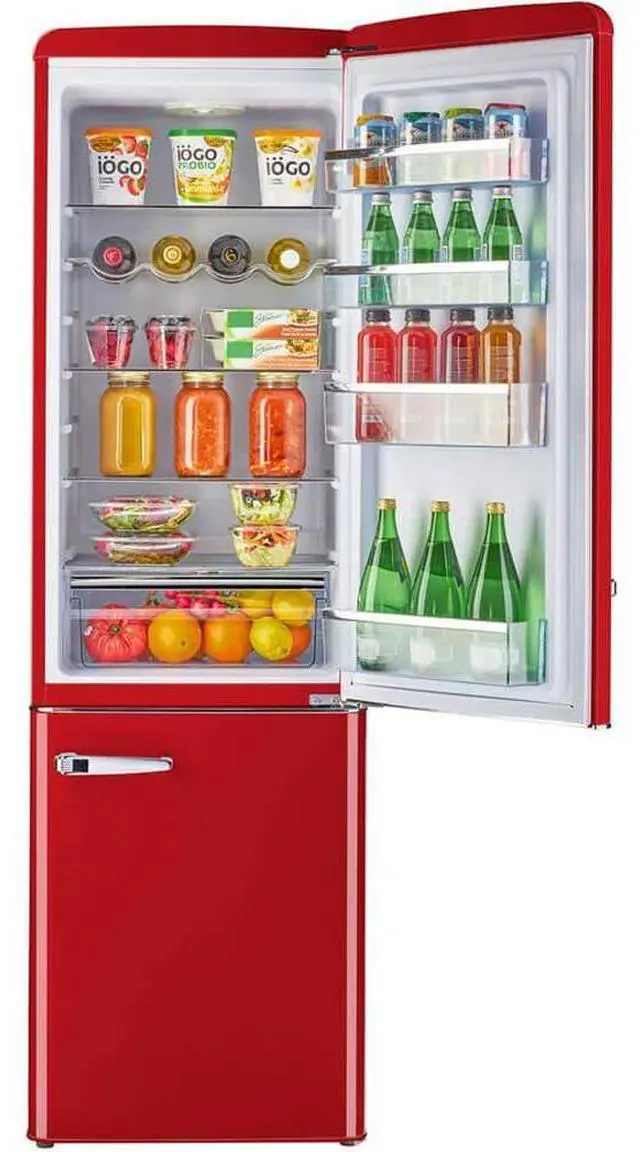 Storing fresh and frozen food is quick and convenient thanks to the fridge-on-top, freezer-at-the-bottom design. Convenient storage options and simple, effortless controls all packed into a stylish retro design make this the perfect stand-out unit for your home, cabin, garage, and more.