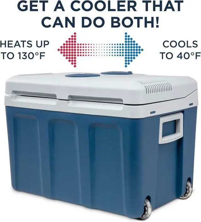 Ivation Electric Cooler & Warmer with Wheels & Handle |48 Quart (45 L) Portable Thermoelectric Fridge For vehicles & Trucks| 110V AC Home Power Cord & 12V Car Adapter for Camping, Travel & Picnics