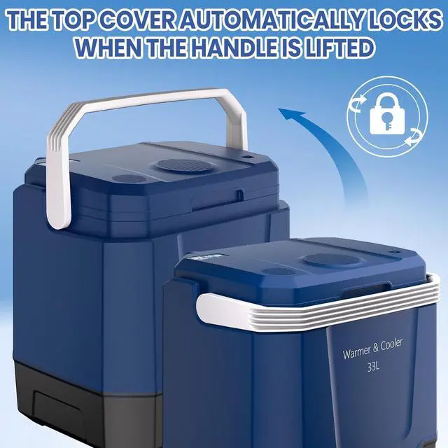 35 QT (33 L) Electric Cooler & Warmer, Portable Car Refrigerator With Automatic Locking Handle, 12V Car Cooler for Vehicle & Trucks, 110V AC Home Power Cord, Plug In Coolers,Blue