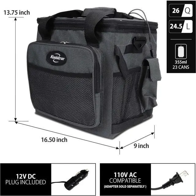 Plugs Into Any 12V Outlet: Electric cooler comes with a 12V DC adapter for use on the go in your car, truck, or boat; also compatible with AC power (adapter sold separately) for indoors