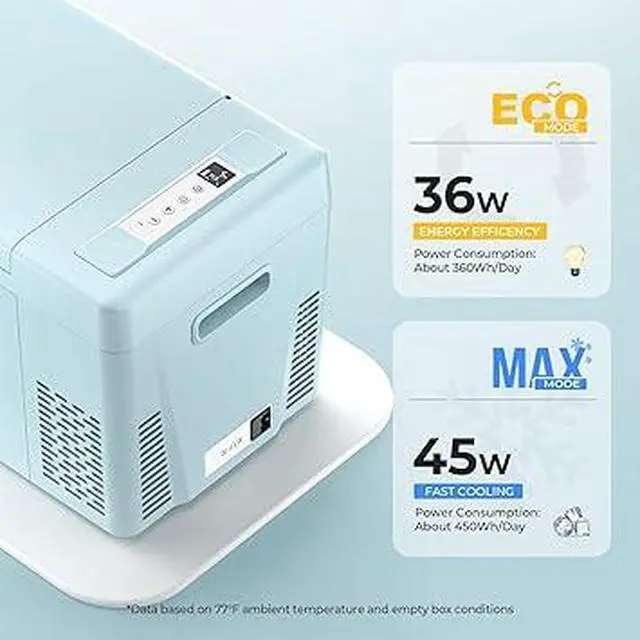 45W Low Power Consumption: With ECO energy saving mode, this 30QT portable refrigerator's operating power is about 36W. Even running on MAX mode(45W), it consumes far less than 1kWh/day for its intelligent cycle work. You can run this portable freezer fridge with 12/24V DC power on various vehicles, such as SUVs, Trucks, RVs, Camper, Van, Boat, etc