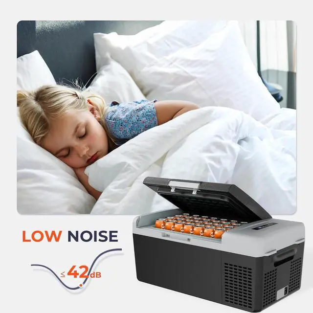 Quiet Operation & LCD Panel: The portable refrigerator operates quietly at 42dB, ensuring a peaceful environment even during operation, making your journey more enjoyable. The LCD panel allows you to adjust the temperature range as needed and monitor the 12V car refrigerator's operation at any time. You can set any temperature from -4 to 68 (-20 to 20)
