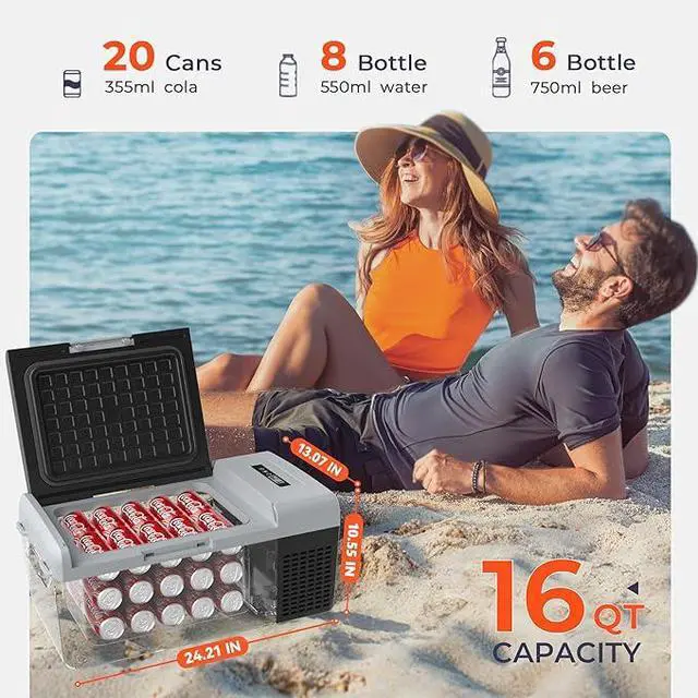 12 Volt Refrigerator Portable Fridge - 16 Quart(15L) Electric Cooler Compressor fridge -4-68, 12/24V DC & 100-240V AC Car Refrigerator for Camping, RV, Fishing, Travel, Home