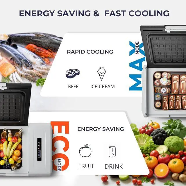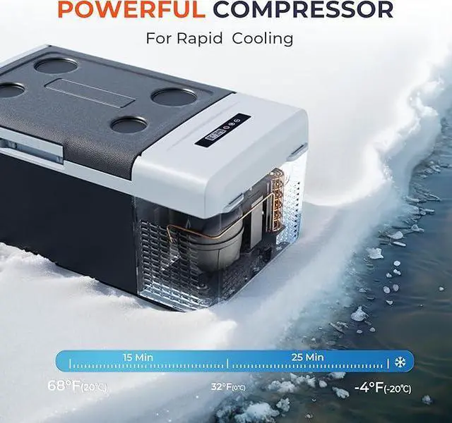 High Efficiency Compressor: EKOJUCE 12 volt car refrigerator uses advanced refrigeration technology and is equipped with a powerful compressor for a compact size and high efficiency. The EKOJUCE electric cooler is UL certified, energy-efficient, and has low energy consumption. Thanks to the powerful compressor, you can use it indoors, in the garage, or at an outdoor party