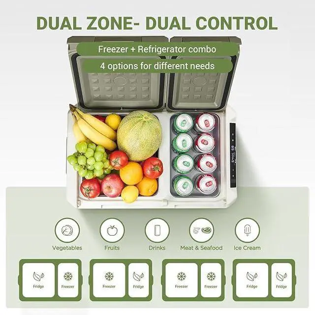 Dual Zone & APP Control : BODEGA car refrigerator adopts the latest dual-zone dual-control technology, allowing you to independently control the temperatures of two zones from 68 to -4 . You can choose to use each zone independently as a refrigerator or freezer to meet your various needs. Our car fridge supports a APP connection, enabling you to conveniently control the temperature range and set the mode through a mobile APP. You can monitor the temperature and status easily anytime