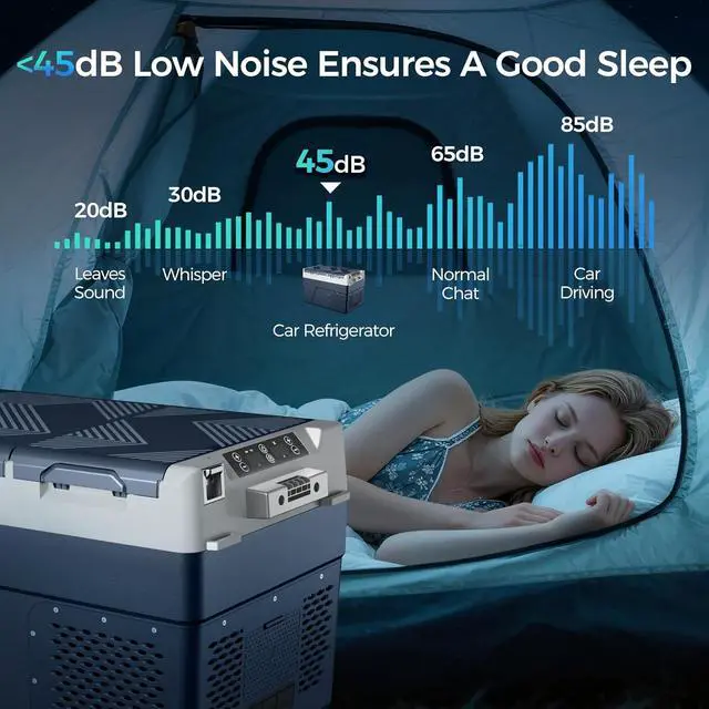 45dB Low Noise & Anti-Shaking: This 12v freezer has 4 fixing holes on both sides, which can be firmly secured to the vehicle with ropesstaying stable even in 40° bumpy off-road conditions. The 45dB quiet technology ensures the 12 volt cooler wont disturb driving or rest, keeping you safe and comfortable.