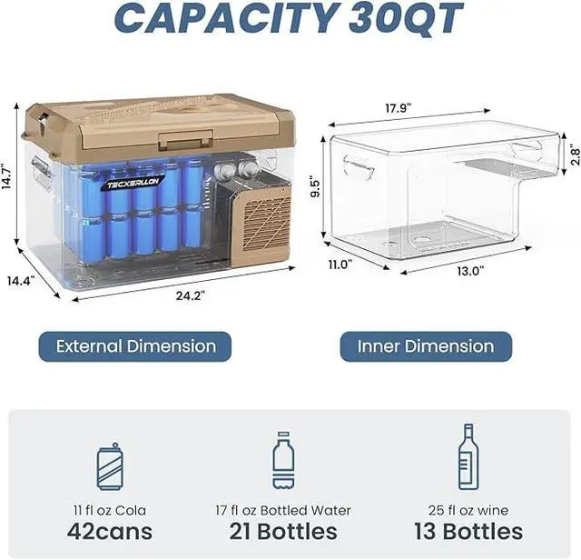Convenient OperationEasily switch between fridge and freezer modes using the intuitive control panel or remotely via your smartphone app. The TECXERLLON 30 Quart cooler serves as both a portable fridge and freezer with a temperature range from 68 to -4.
