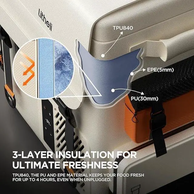 [What Youll Get] Professional technical support included. If you have any questions, please contact customer service for assistance. Your package includes: 1 Litheli FrozenPack portable fridge, 1 backpack shoulder strap, 1 waist belt, 1 backpack suspension system, 1 vehicle charging cable, 1 detachable top box, 2 detachable side pockets, and 1 user manual.
