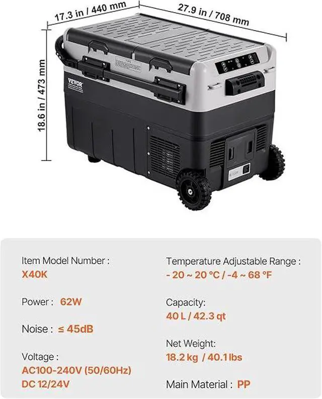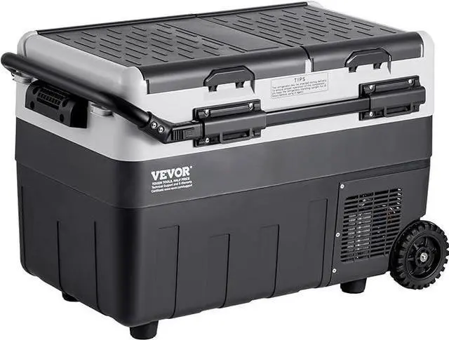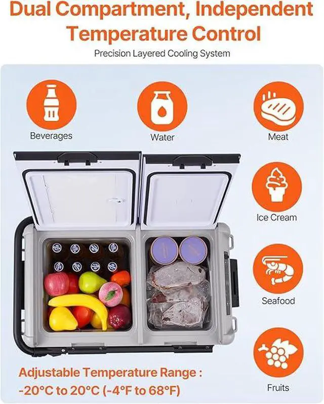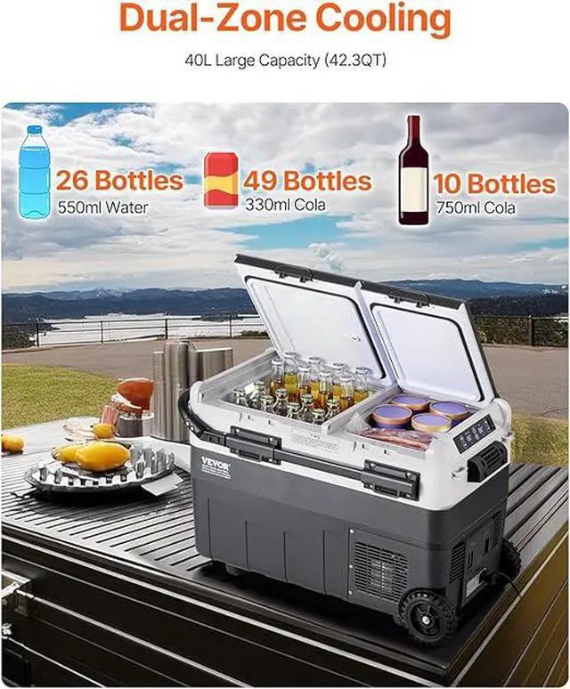 X40K Refrigerator 42.3 Qt Dual Storage Zones Car Fridge, Electric Cooler with Telescopic Handle, Portable Freezer for Vehicle Camping Truck Van RV SUV Road Trip Travel, Black