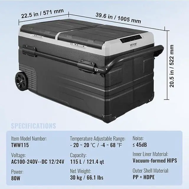 Reliable Power Switch: With both 100240V AC and 12/24V DC options, the portable freezer shifts easily between indoor and in-car power. A three-level battery setup helps reduce excessive draw on the vehicle system, and the low-noise build plus stable 45° operation support comfort during long journeys