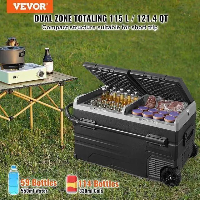 Car Refrigerator, 12 Volt Car Refrigerator Fridge, 121.4QT Dual Zone Portable Freezer with Wheels and Handle, -4-68, 12/24V DC and 100-240V AC Compressor Cooler for Outdoor, Camping