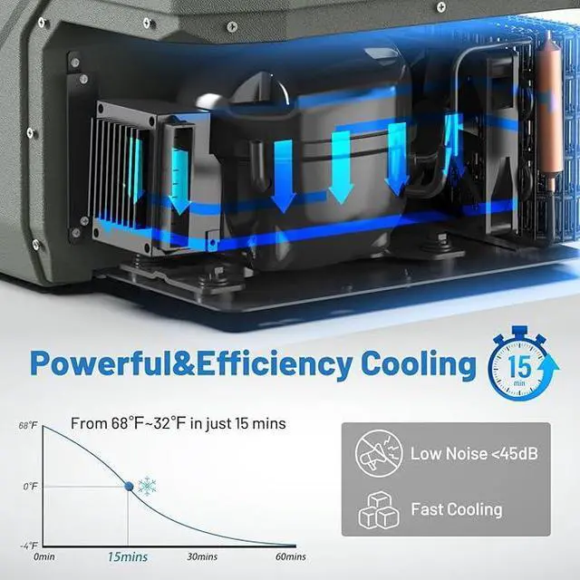EFFICIENT COOLING: Powered by an upgraded inverter compressor, this plug in cooler can rapidly cool down from 77 to 32 in just 15 minutes, and to -4 within an hour, far more than the performance of a thermal electric cooler. Fast cooling really matters.
