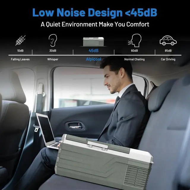 QUIET RUNNING: We fully know how noise annoys, so we managed to control the running noise of this portable fridge to 45dB (whispering level), ensuring you can enjoy a cool adventure with peace of mind. Not disrupptive even when sleeping nearby.