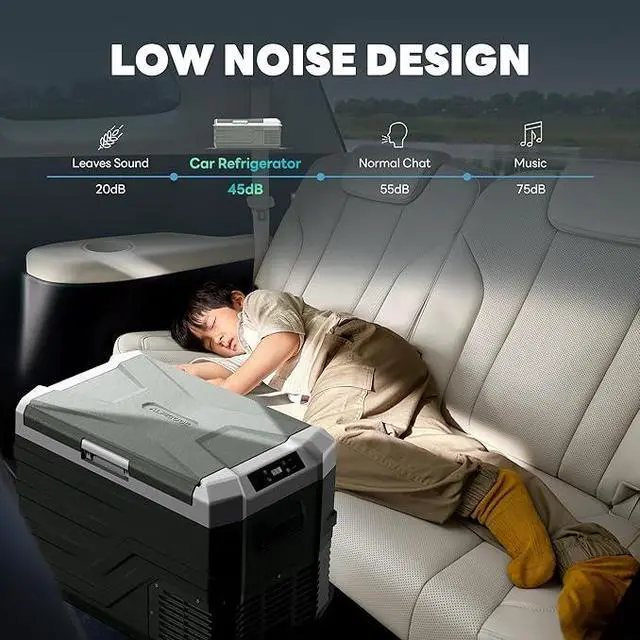 QUIET RUNNING: We fully know how noise annoys, so we managed to control the running noise of this portable fridge to 45dB (whispering level), ensuring you can enjoy a cool adventure with peace of mind. Not disrupptive even when sleeping nearby.