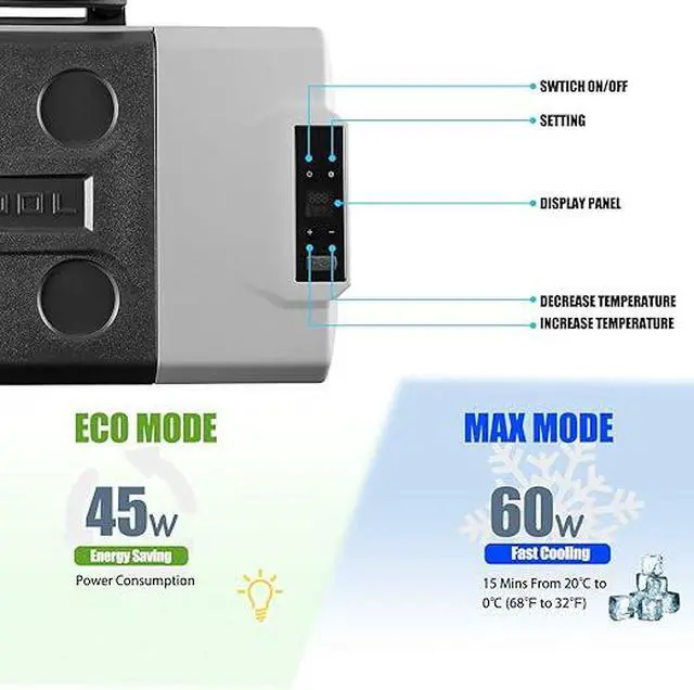 FREEZES WITHOUT ICE: -4°F(-20°C) deep chilling down performance ,no need ice ever. Run great with your small solar system as well.