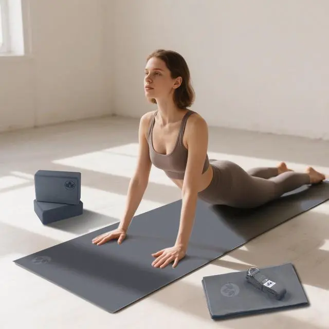 The 7-Piece Yoga Kit is a comprehensive set designed to provide everything you need for a well-rounded yoga practice. Ideal for both beginners and experienced practitioners, this kit includes a 6mm cushioned non-slip yoga mat that offers stability and comfort during your sessions. With two foam blocks and an 8ft yoga strap, this set supports better alignment and flexibility, helping you deepen stretches and achieve optimal posture. Additionally, the microfiber mat and hand towels absorb sweat, keeping you dry and focused, while the carrying bag ensures convenient storage and portability. Whether you're practicing at home, in the studio, or on the go, the Set offers all the essential equipment needed for a complete yoga experience. This yoga starter kit is an ideal solution for those looking to enhance their practice with high-quality tools that promote comfort and performance. The combination of durable, thoughtful design and portable convenience makes this kit a reliable addition to any yoga routine, offering everything you need to improve your practice and stay focused throughout every session.